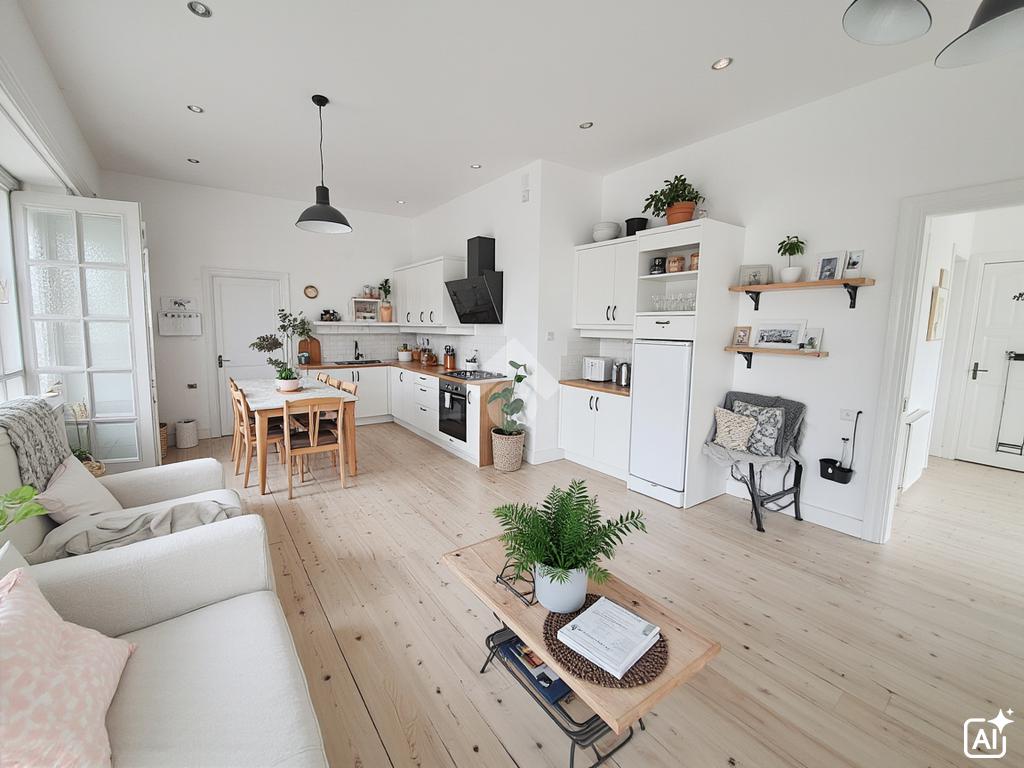 L’ingresso si apre su un vano accogliente che conduce al grande soggiorno con cucina a vista, un ambiente moderno e luminoso grazie alla presenza di una grande finestra e dell’accesso diretto a uno dei due spaziosi balconi, perfetti per momenti di relax all’aperto.