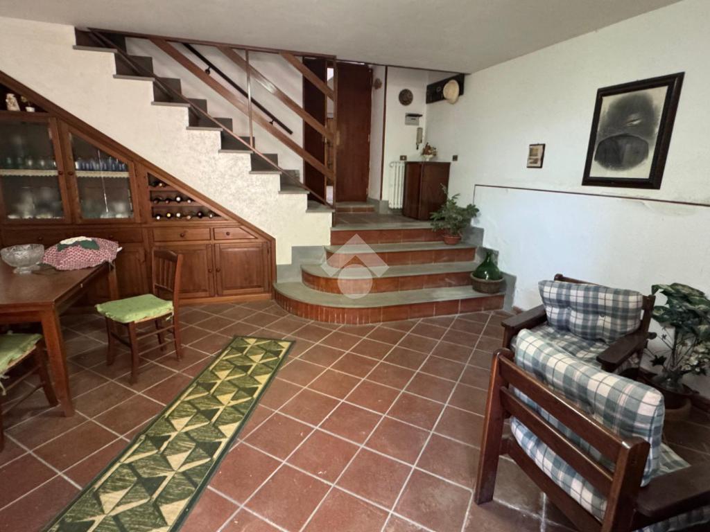 Piano Terra: accogliente zona giorno composta da un luminoso soggiorno con camino, perfetto per momenti di relax, una cucina funzionale e un bagno di servizio.