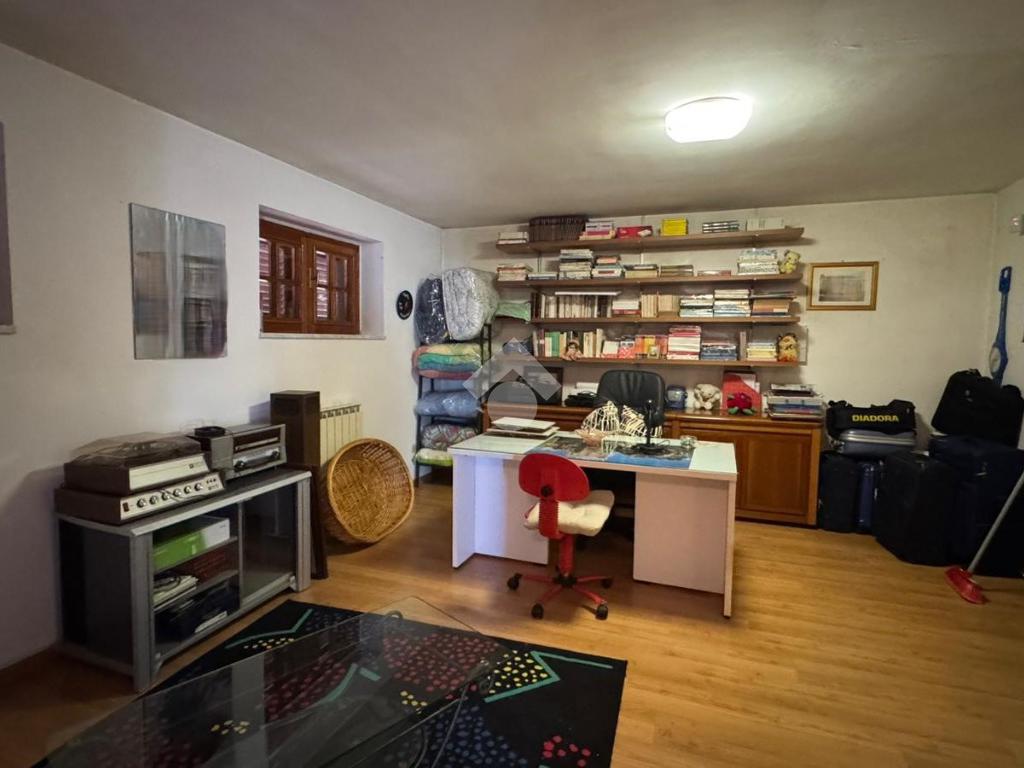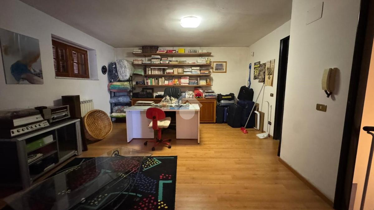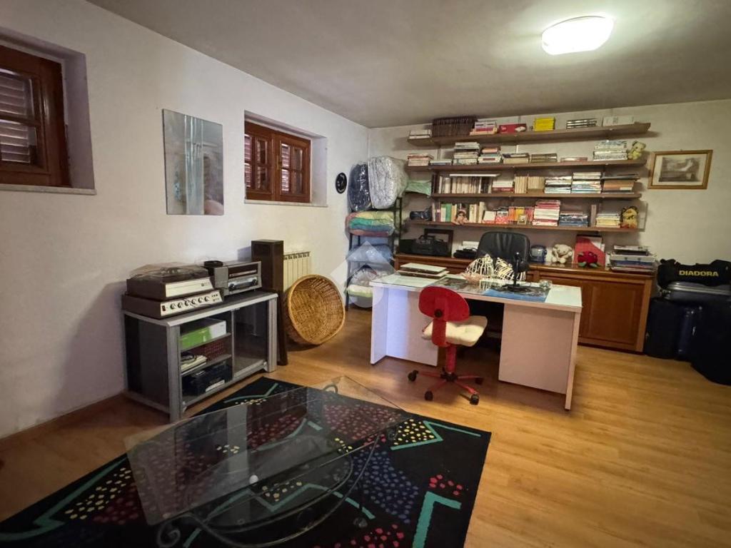 Il piano seminterrato ospita un ampio soggiorno, un bagno e una pratica lavanderia, ideali come zona relax o area hobby.