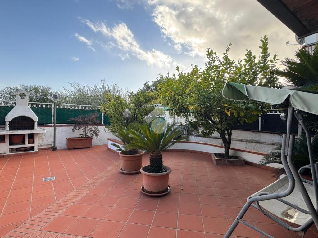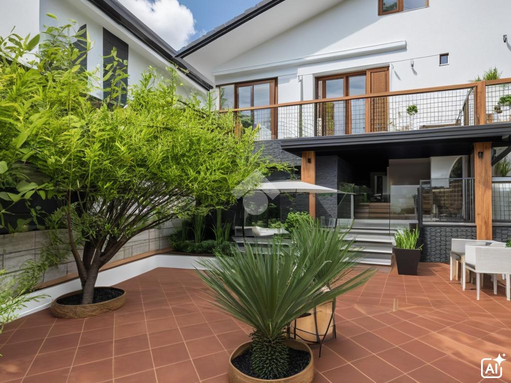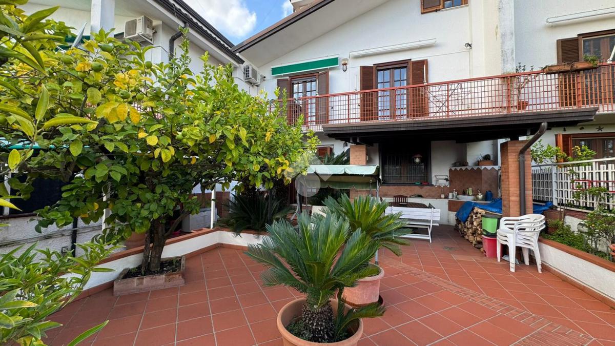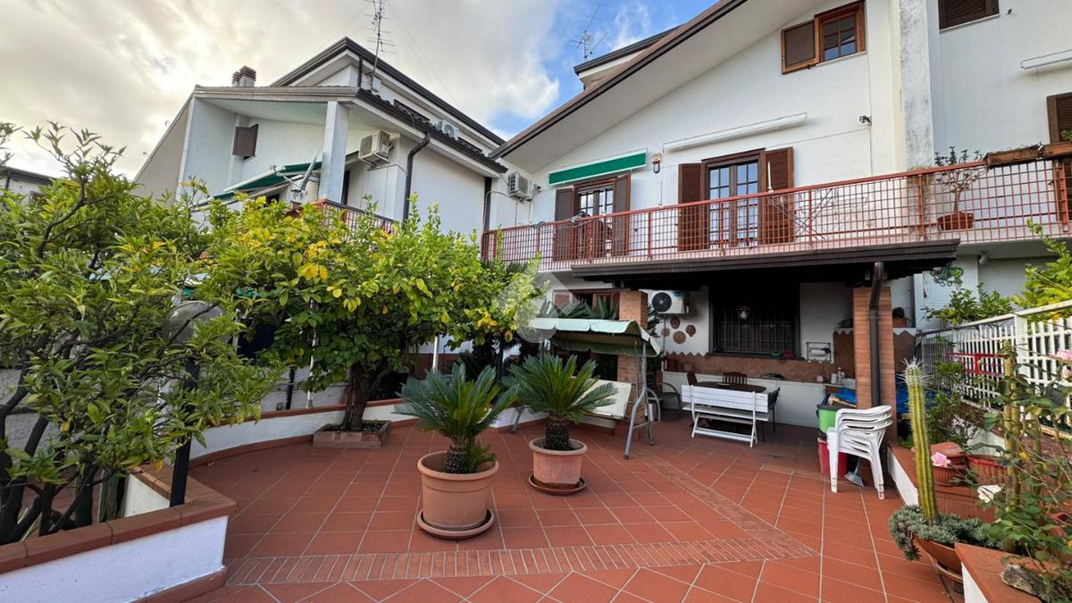 All’esterno, la proprietà è arricchita da un ampio giardino terrazzato all’ingresso e da un secondo terrazzo con tettoia, perfetti per momenti di relax all’aperto, pranzi in famiglia o per chi ama vivere con i propri animali domestici.