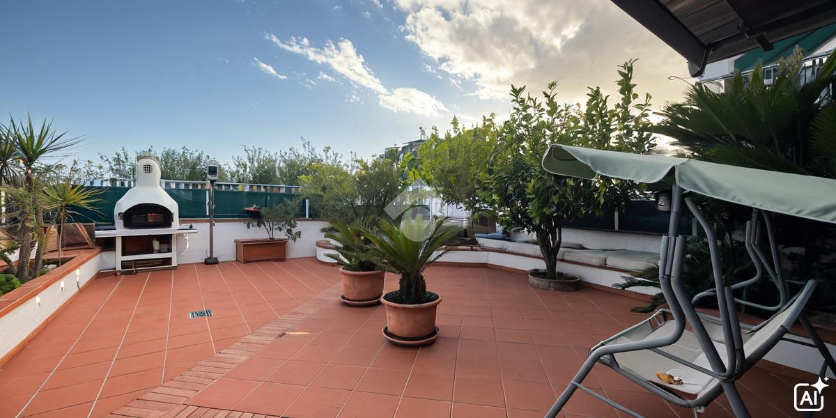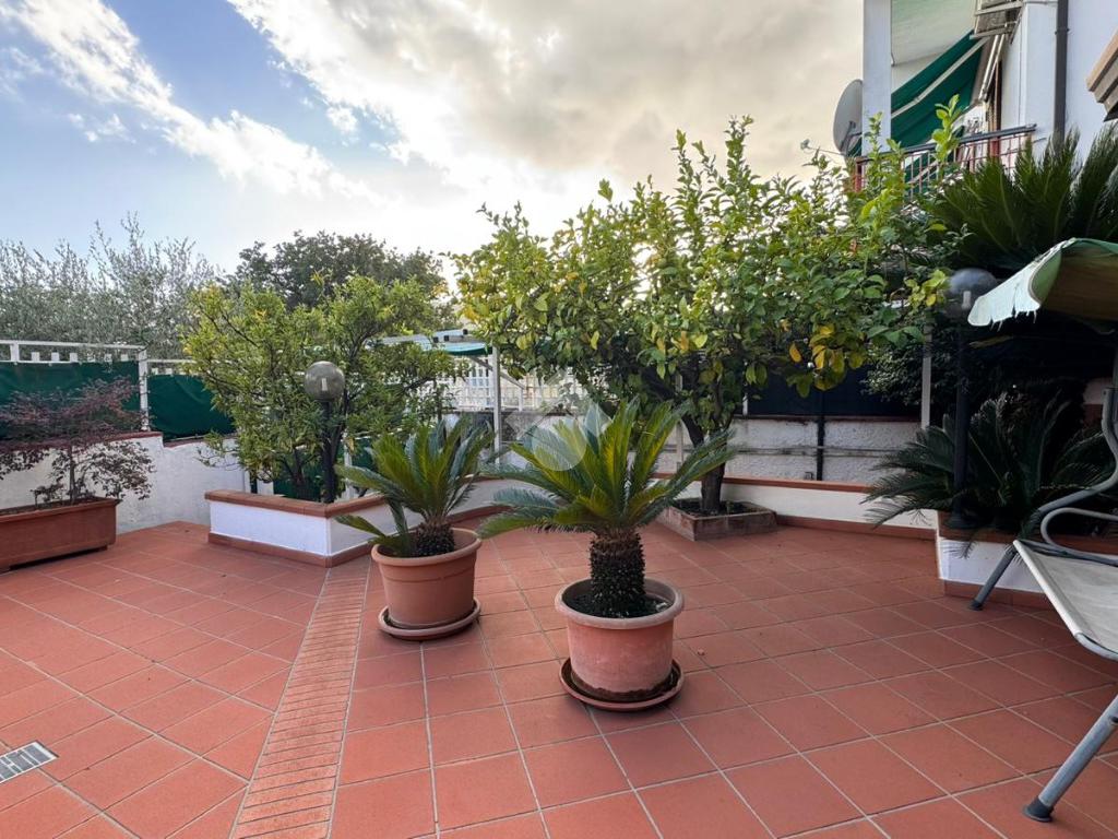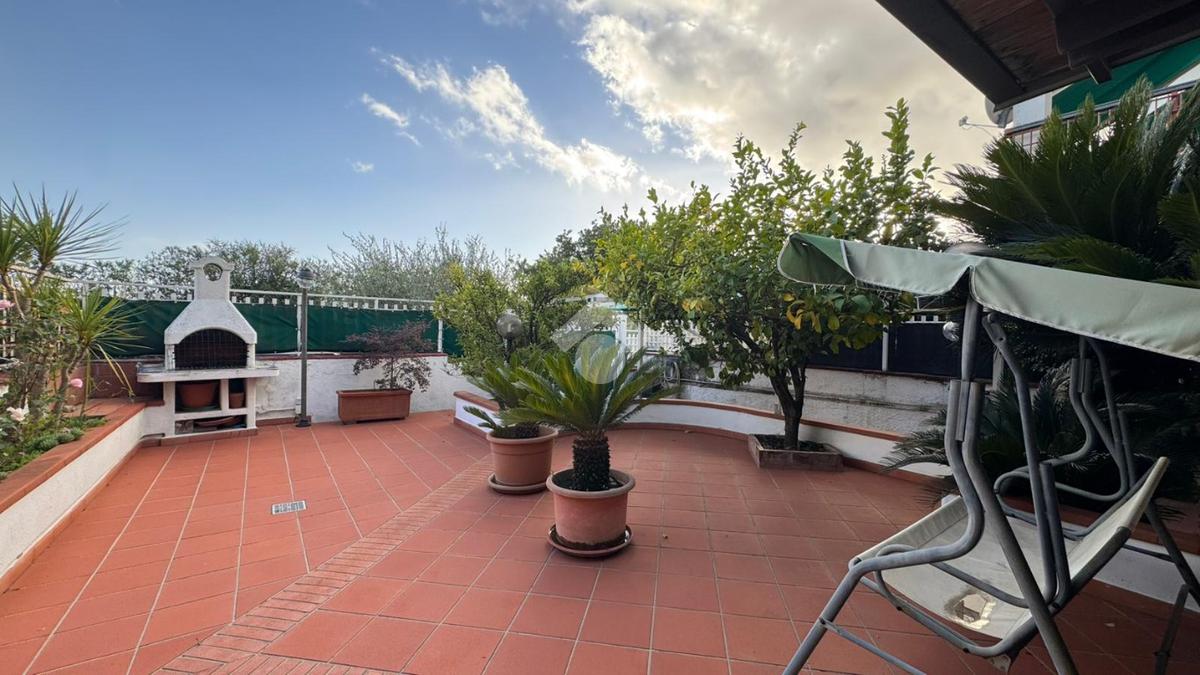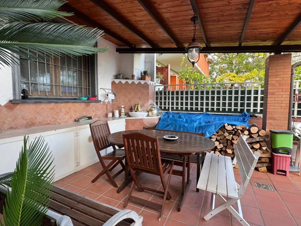 All’esterno, la proprietà è arricchita da un ampio giardino terrazzato all’ingresso e da un secondo terrazzo con tettoia, perfetti per momenti di relax all’aperto, pranzi in famiglia o per chi ama vivere con i propri animali domestici.